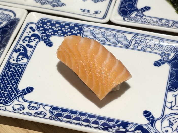 ドドンっとお席に到着した瞬間からインパクト大!通常時に比べて約2倍のボリュームのネタを使用した”お寿司”は、食べるとネタの旨味が口いっぱいに広がります。まぐろ(赤身)は「天然インド鮪」を使用。