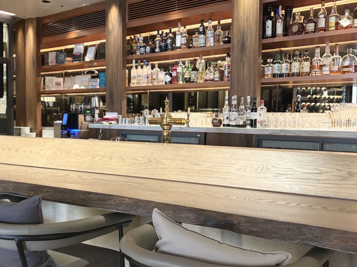大きなエントランスすぐには、シックなバーカウンターがお出迎え。案内された広々としたフロアは開放感が溢れており、何名まででも入れてしまいそうなテーブル席や、半個室になったお席があります。