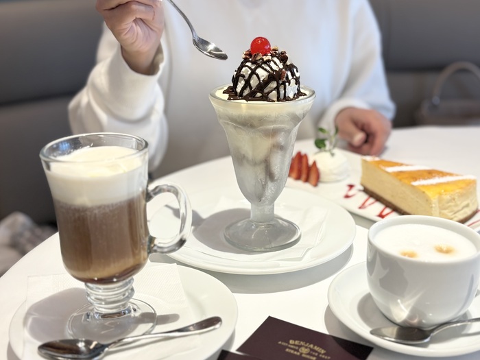 「チョコレートファッジサンデー」や「ニューヨークチーズケーキ」など、食後のティータイムのお供として、デザートの種類も豊富です。