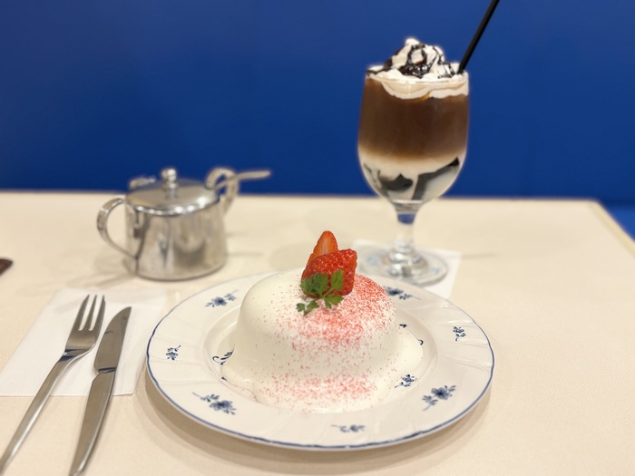 ふわっと軽いクリームで包むふっくらとしたスフレパンケーキ、甘酸っぱい苺といただくスイーツはお写真に残したくなるくらいカワイイ!