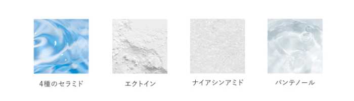 強い紫外線やエアコンによる乾燥から肌を守るため、4種のセラミド(*1)をはじめ、「エクトイン(*2)」「ナイアシンアミド(*2)」「パンテノール(*3)」などのうるおい成分を贅沢に配合。