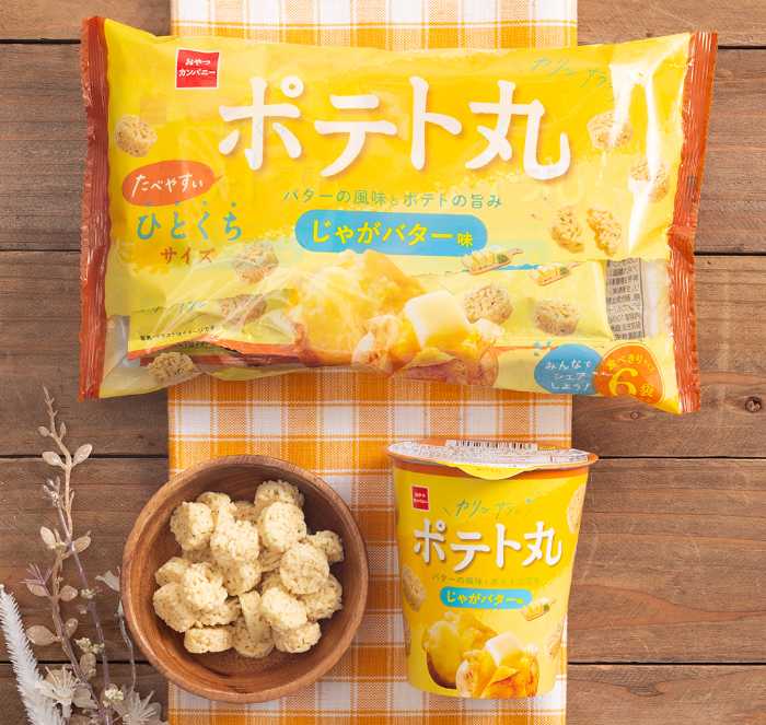 軽やかな食感と、ほっとする味わいが魅力の「ポテト丸」。新定番のじゃがバター味は、甘すぎない満足感で大人のおやつ時間にぴったりです。