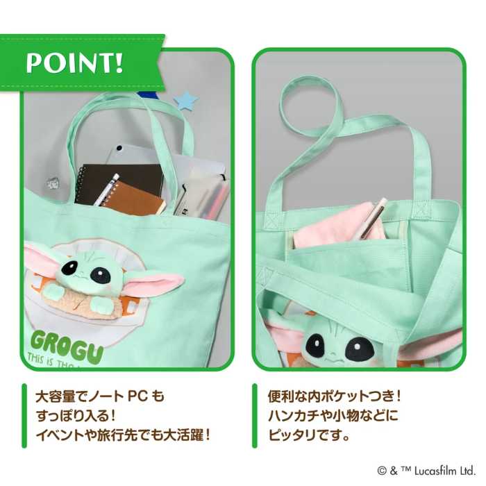 可愛さとインパクトを同時に楽しみたい大人女子におすすめしたいのが、「ぬいぬいバッグ」シリーズの最新作。今回は『スター・ウォーズ』のドラマシリーズ『マンダロリアン』で人気のグローグーがモチーフに♡ぬいぐるみの愛らしさと実用性を兼ね備えたトートバッグは、日常コーデのアクセントにもぴったり。ファン心をくすぐる新作バッグに注目です。]