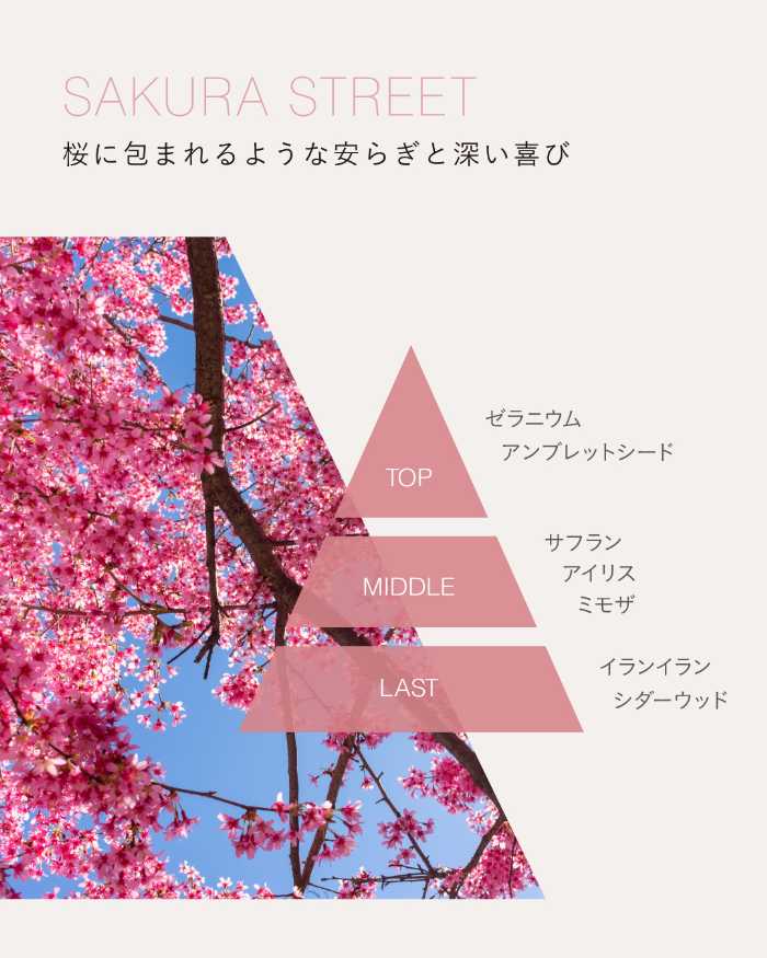 「SAKURA STREET」は、アメリカ・ワシントンD.C.の桜をイメージした香り。