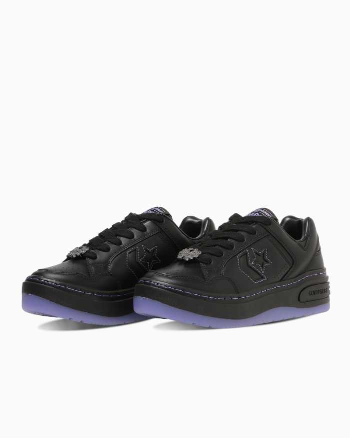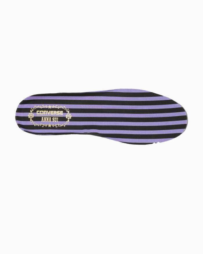 CONVERSEからANNA SUIとのコラボレーションモデルが登場♡ベースは人気の「WEAPON」を厚底仕様にアレンジし、ブラック/パープルのカラーに蝶や薔薇モチーフを散りばめた限定スニーカー&クロッグです。軽量で歩きやすく、春のスタイリングにも映える一足です♪