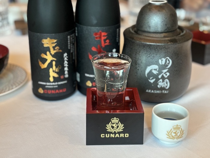 キュナードが運航するキュナード船で提供されている日本酒は、明石酒類醸造との共同開発で製造された特別な日本酒。