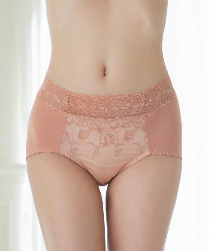 深履き仕様で安定感のある履き心地ながら、ブラとリンクした華やかなレースデザインで気分もアップ。機能性ショーツが初めての方でも取り入れやすい一枚です。