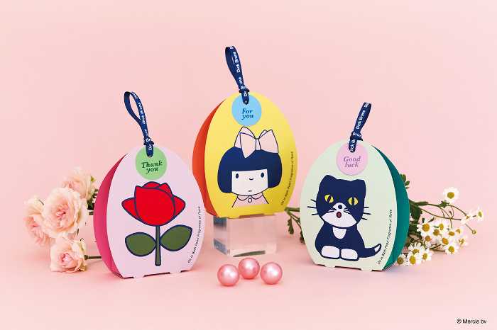 それぞれにメッセージタグが付いており、ローズは「Thank you」、ガールは「For you」、キャットは「Good luck」。贈る相手やシーンに合わせて選べるのも魅力です。