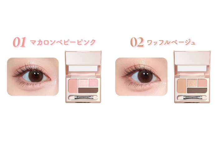 “ふわっと立体感&ラメ”を叶える4色入り設計。低彩度カラーだから肌なじみがよく、ナチュラルに盛れるのが魅力です。