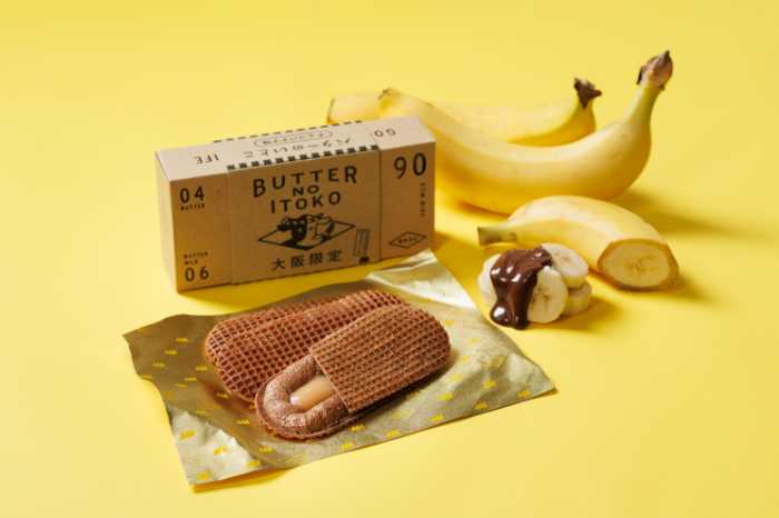 2026年2月1日(日)より、大阪限定フレーバー「バターのいとこチョコバナナ味」が新発売。屋台の定番チョコバナナをイメージし、バナナジャムをチョコクリームとチョコ生地でサンド。