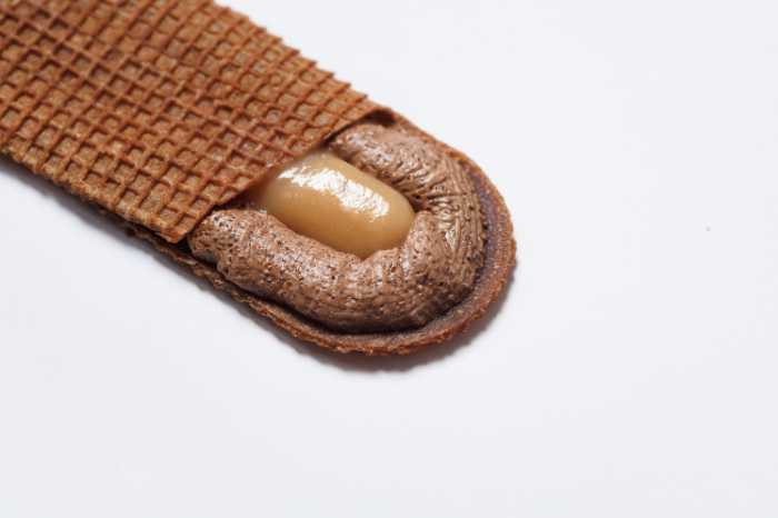 半分にコーティングすることで、2つのフレーバーと食感を1枚で楽しめます。