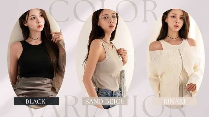 使いやすいベーシックカラーを中心に、ブラック、キナリ、サンドベージュの3色展開。1枚でさらりと着ても、シャツやジャケットのインナーとしてもコーディネートを格上げしてくれます♪