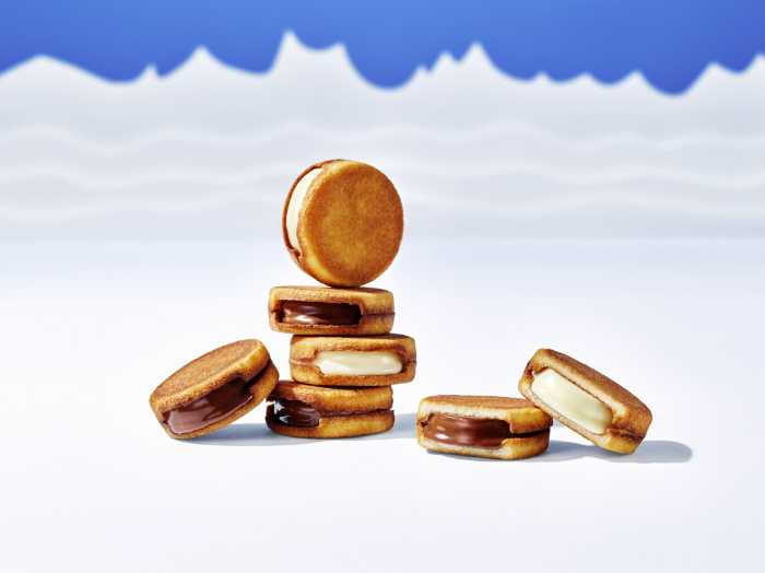 累計販売2,000万*枚突破の生チョコレートサンドクッキー。直火で焼き上げたラングドシャのカリカリ食感と、なめらかな生チョコが絶妙。白は生ホワイトチョコレート、黒は生チョコレート。