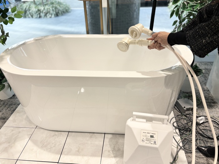 施工の必要がない、ミラブルポータブルは賃貸住宅や施工が出来ない浴槽などにも設置可能なので、自宅の浴槽に設置や持ち運びも可能。どこでも好きな場所でファインバブル入浴をお楽しみ頂けます。