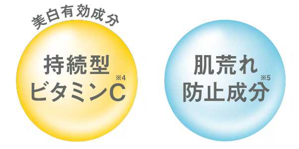 肌荒れ防止成分グリチルリチン酸ジカリウム※12と、美白有効成分持続型ビタミンC※11のW配合で、肌荒れ・ニキビ・シミ・そばかすを予防。
