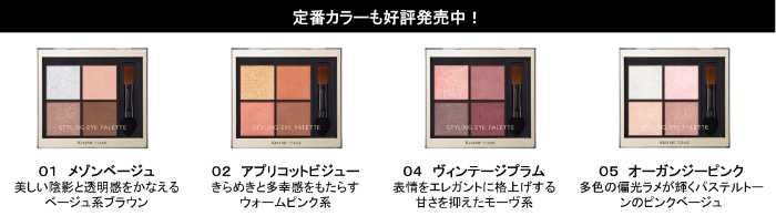 クリアラメ、トーンカラー、ディープカラーを組み合わせた4色設計で、重ねてもくすみにくい美発色。自然な陰影をつくり、立体的な目元へ導きます。