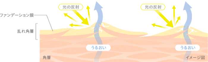 花王は、肌表面の「乱れ角層」がファンデーションのムラづきやテカリ、ヨレ、うるおい不足によるカサつきなど、メイクくずれの一因となることを発見*3。