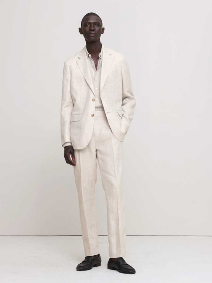 メンズでは、ヘリンボーンリネンスーツジャケット(55,000円)とスリムヘリンボーンリネンスーツパンツ(28,000円)がラインアップ。