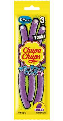一方、「チュッパチャプス サワーチューブロンググミ」は容量24g。甘酸っぱいグレープ味のロングタイプで、ちぎったり丸めたりと自由な食べ方が楽しめます。