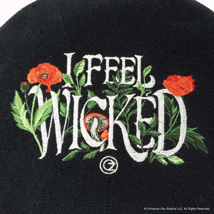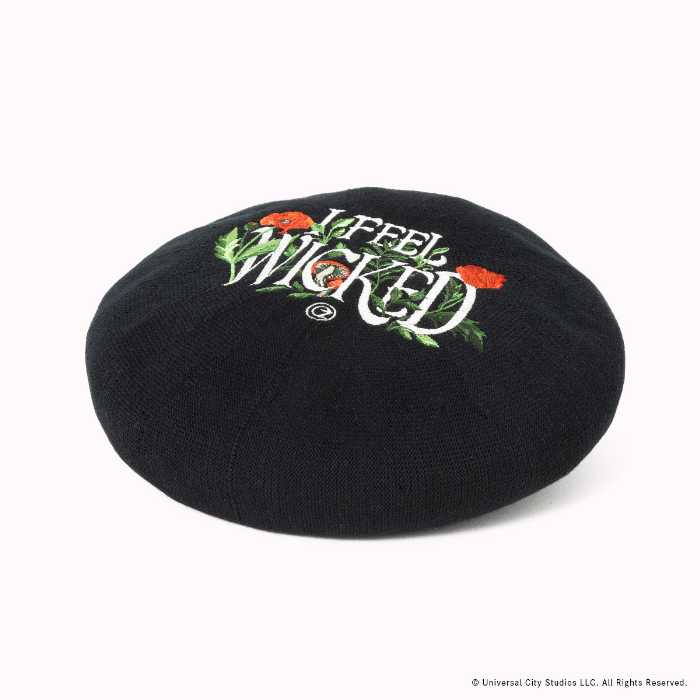「WICKED:FOR GOOD|CA4LA ELPHABA MOTIF BERET」14,300円(税込)は、COLOR:BLACK。ポピーの花や森の植物を刺繍で表現し、物語の奥行きを感じさせるデザインです。