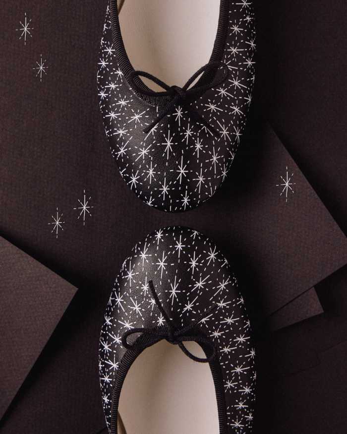 2つの異なる世界観をレペットのアイコンシューズ「Cendrillon」に落とし込み、クラシックとアートが調和した仕上がりになっています。