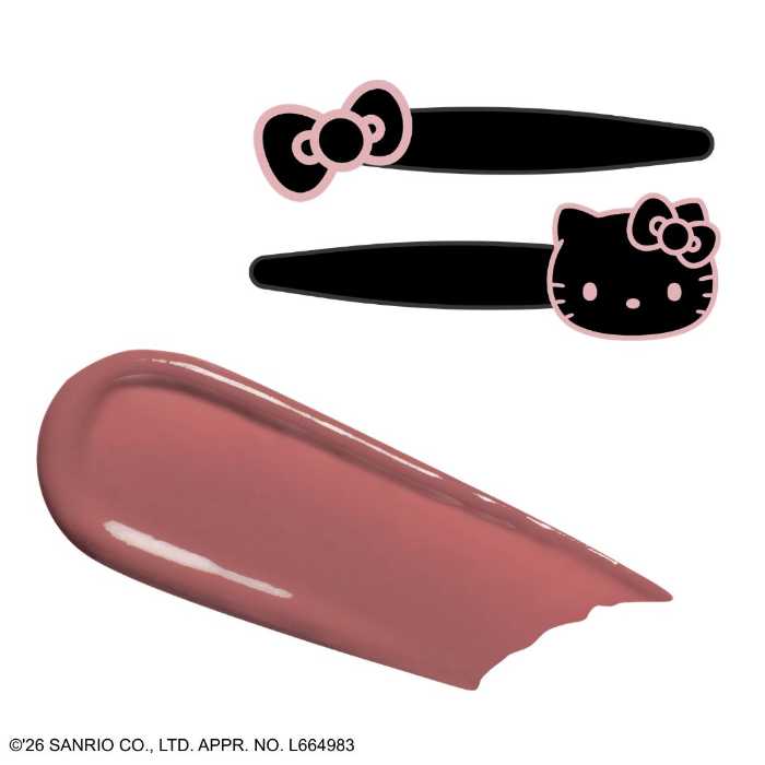 ハローキティ仕様のミニブラシとミキシングパレット付きのセット。薄付きで毛穴やシミを目立たなくし、シームレス肌*に仕上がります。