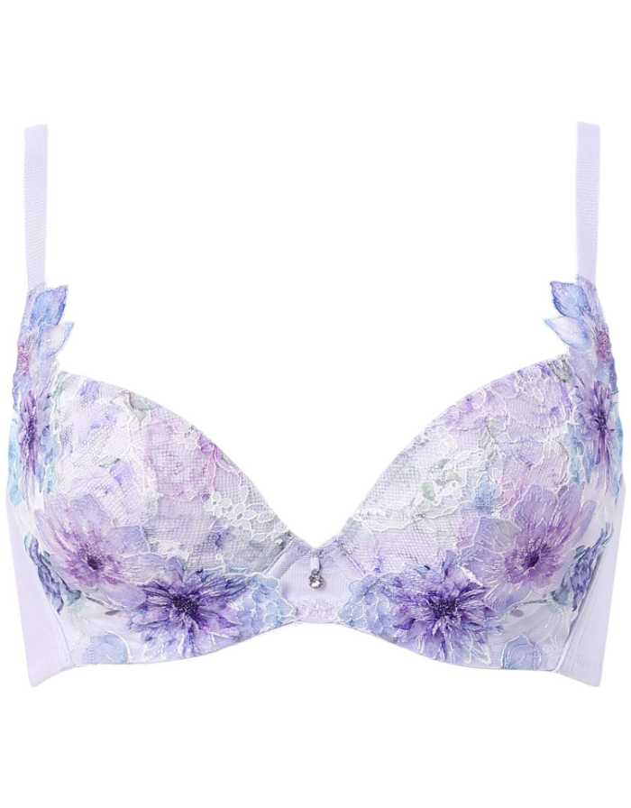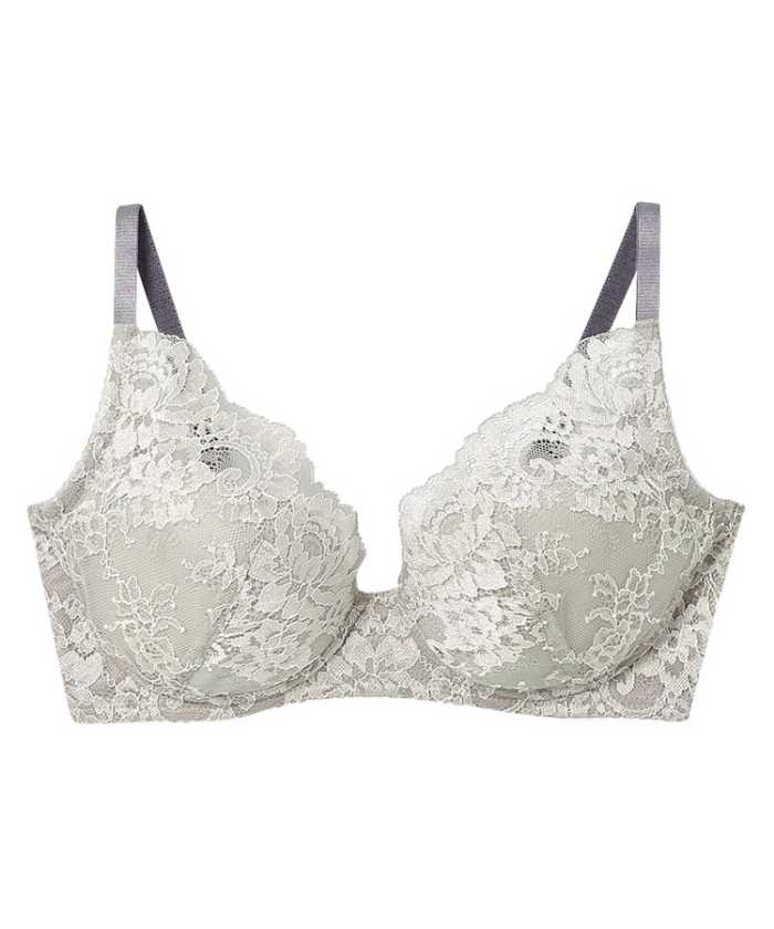 サイド部内蔵の“ハグシート”が体温でやわらかくなり、からだになじむことで、まるでハグされているようなここちよさが続く。ストラップまで続くレースでバストを引き上げ、谷間をメイク。