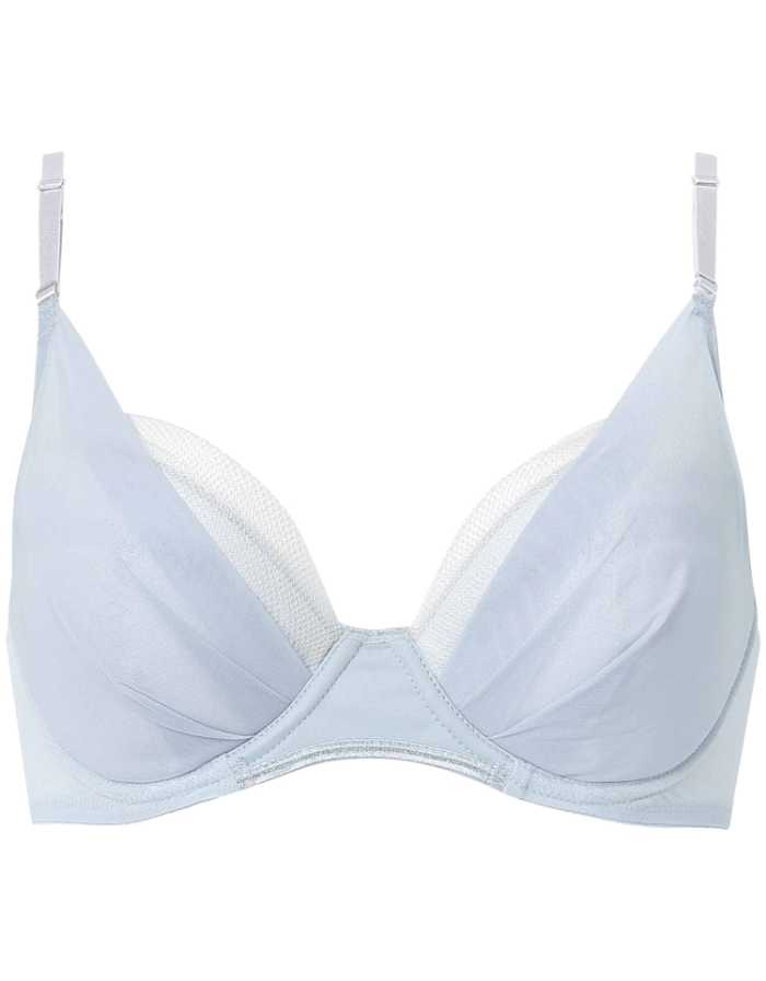 伸縮性のあるパワーネットがバストを引き上げフィット。内蔵シートが伸縮し、カップの広がりを防いでバストの形をキープ。