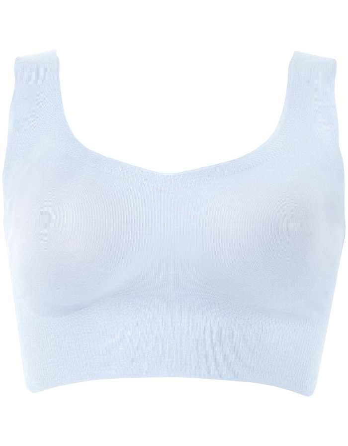 アンダーゴムをなくししめつけ感を軽減。左右一体型カップできれいなシルエットを演出し、背中の段差も目立ちにくい設計。