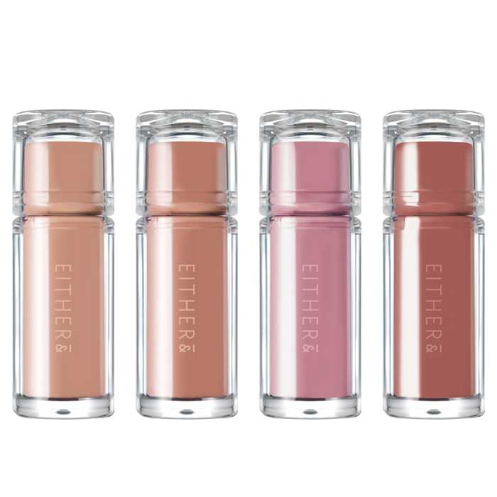 素肌のような軽さと自然なツヤを叶えるEITHER&の新色コスメは、毎日のメイクに取り入れやすいアイテムばかり。ベースメイクとリップをそろえることで、統一感のあるヌーディメイクが完成します。