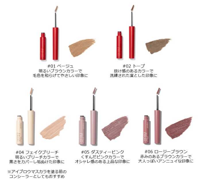 展開カラー:#01ベージュ/#02トープ/#04フェイクブリーチ/#05ダスティーピンク/#06ロージーブラウン