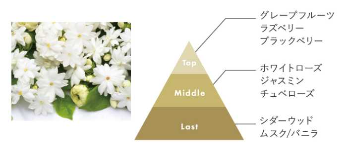毛髪内部に浸透する特別な香料が、香り成分を髪の内側に留めることで、時間が経ってもふとした瞬間に心地よく香ります。