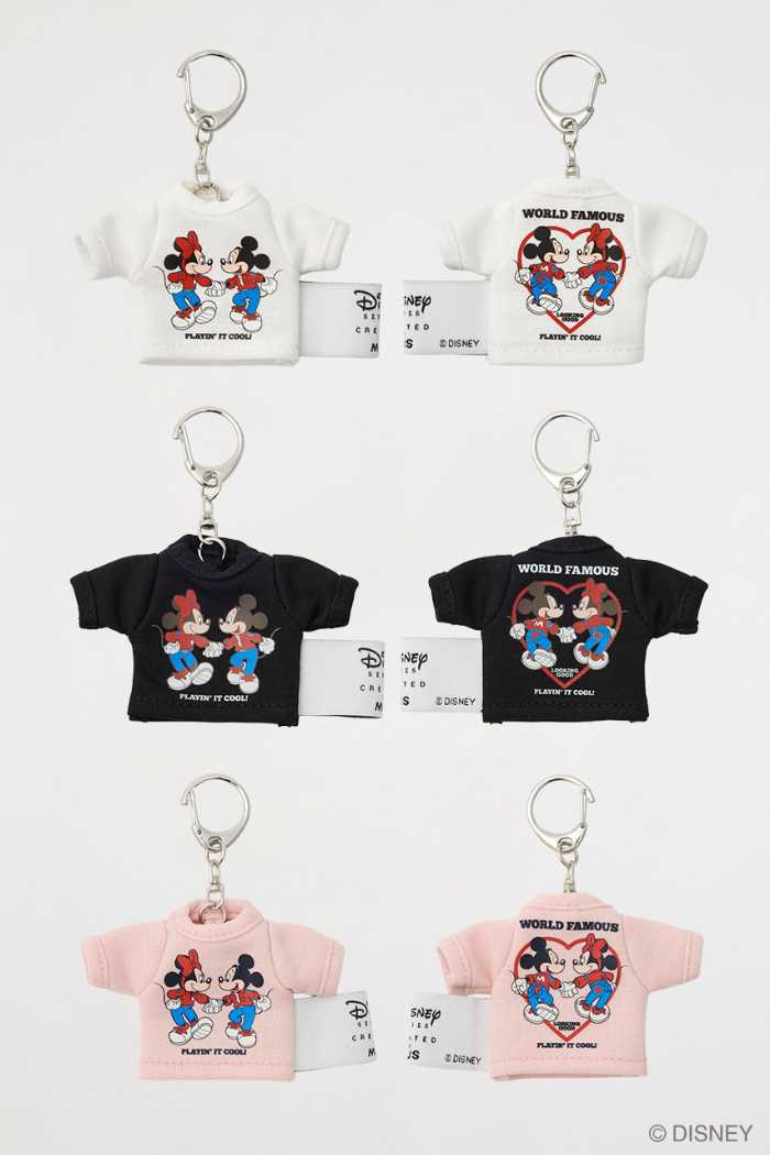 さらに、両面プリントトートバッグやデニム柄ポーチ、ラメ入りハート型アクリルキーホルダー、ミニチュアTシャツのキーホルダーなど小物類も充実しています。