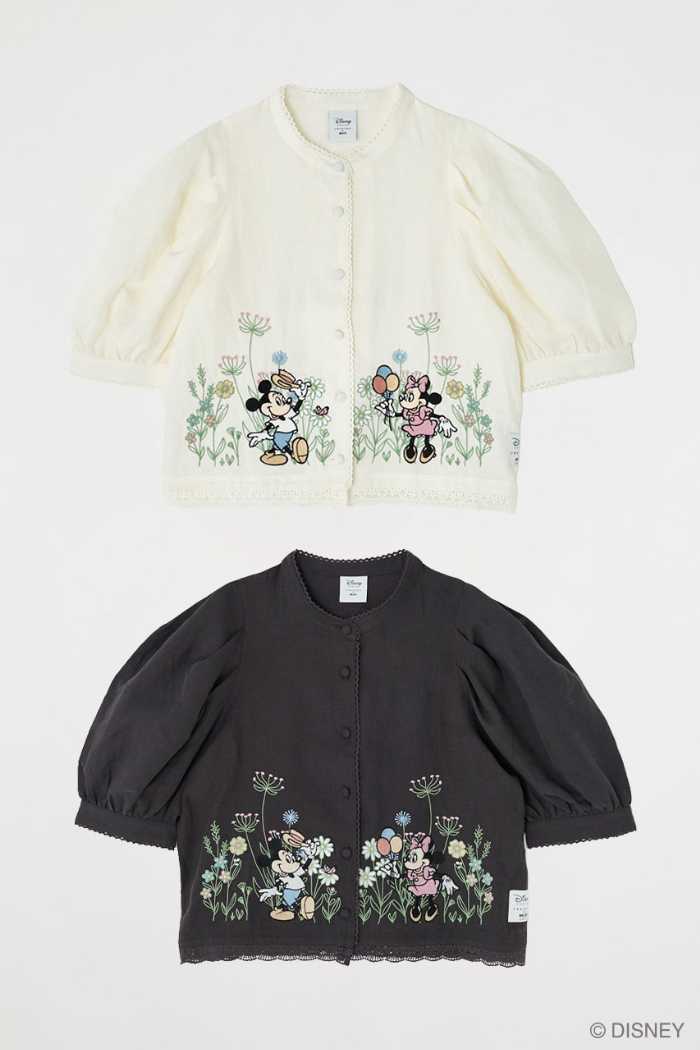 「MICKEY & FRIENDS COLLECTION」では、ピコレースをあしらったブラウスや刺繍入りロンTなどナチュラルな雰囲気のウェアが登場。