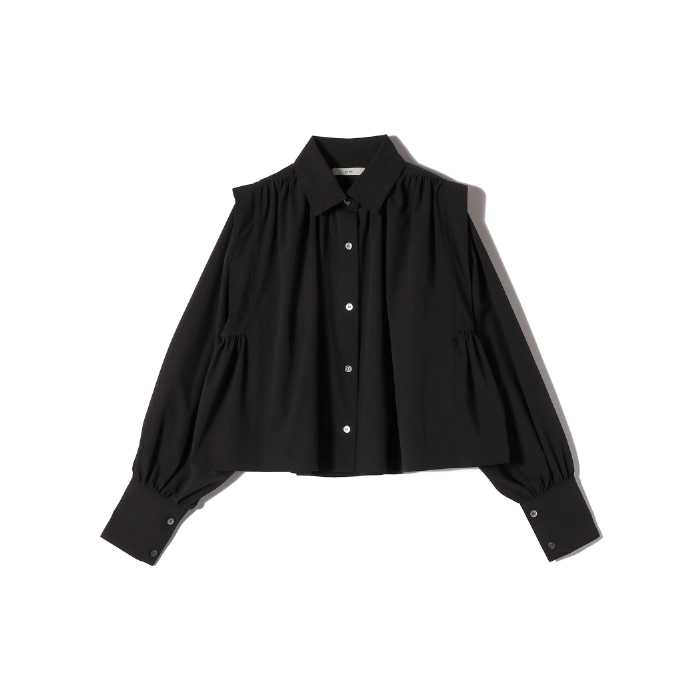 クロップド丈でパンツイン・アウトどちらも美しく決まるブラウス。やや長めの袖が上品な印象を演出し、バックスタイルには贅沢なギャザーを施して華やかさをプラスしています。