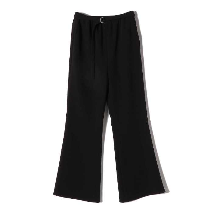 立体感のあるダブルクロス素材を使用したパンツは、フレアシルエットが上品な印象。きれいめにもカジュアルにも合わせやすく、幅広いコーディネートに活躍します。