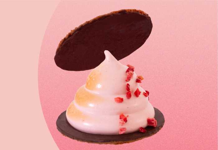 片面をチョココーティングした香ばしいグラハムクッキーで、自家製ストロベリーマシュマロをサンドし、優しい甘さの中に爽やかな酸味を感じられる味わいに仕上げています。