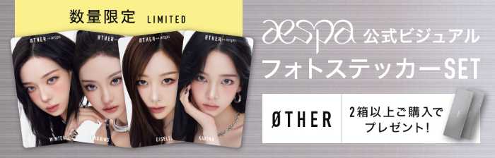 ブランドデビューを記念して、対象商品を2箱以上購入するとØTHERオリジナルaespaステッカー4種1セットがプレゼントされます。