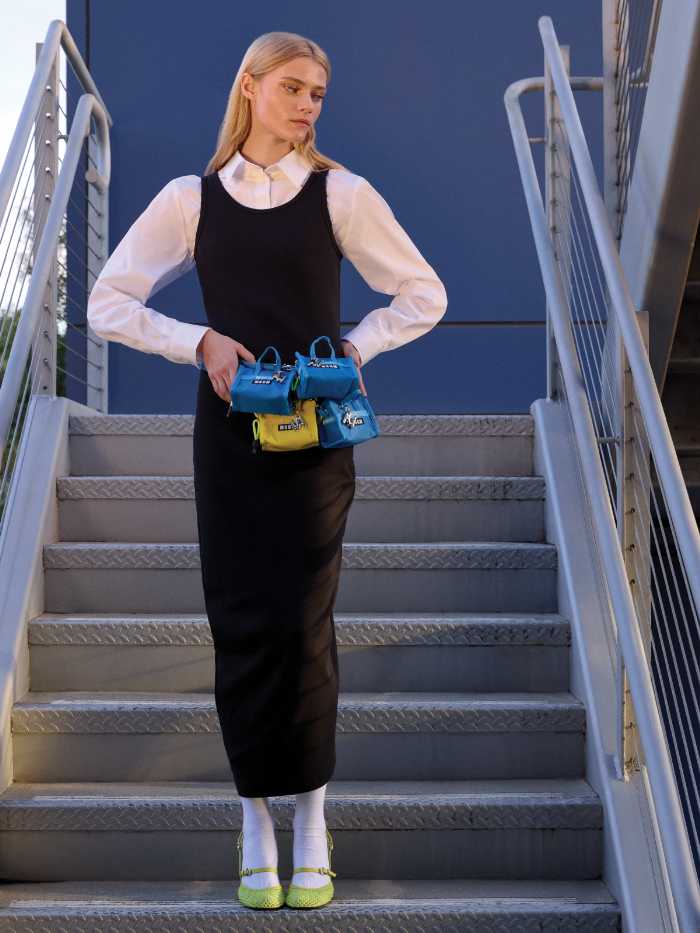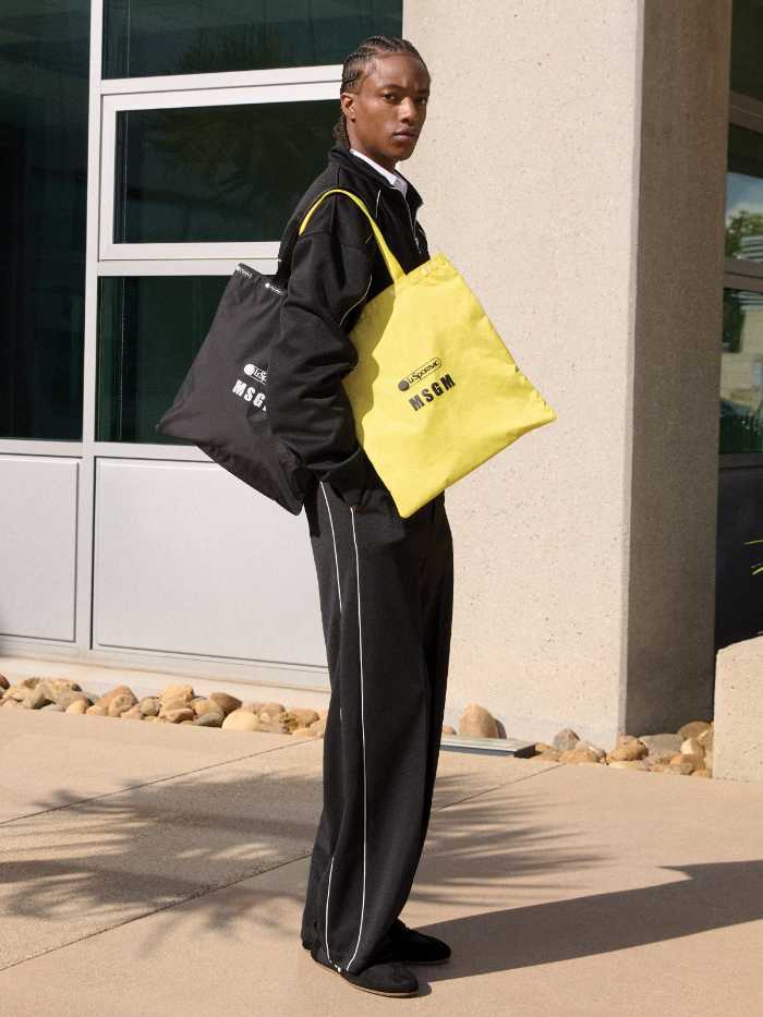 本コレクションは、MSGMのシグネチャーである“TheMwave”モチーフの総柄やアクセントを取り入れた特別仕様。ネオンイエローのロープ引き手やLeSportsacロゴ入りのシルバーカラビナなど、細部までこだわりが詰まっています。