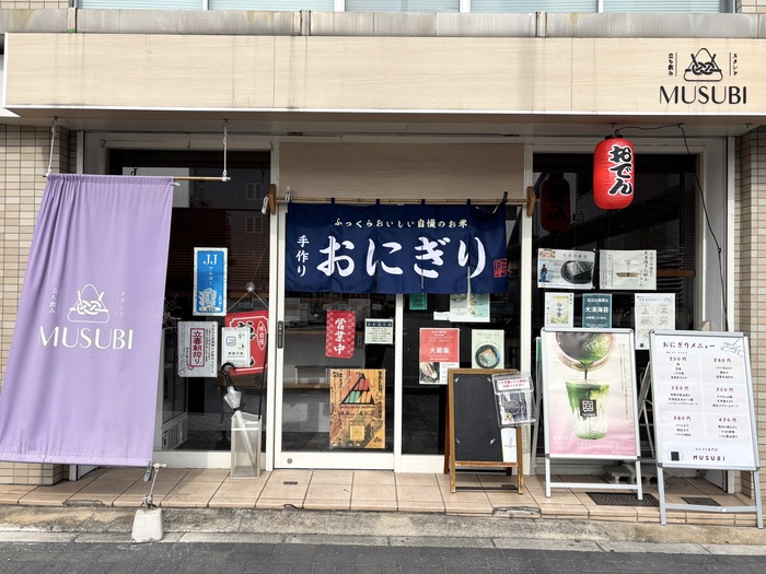 兵庫県東加古川駅からすぐ、3秒!東加古川駅南側ロータリーすぐ、青い暖簾に”おむすび”の文字が目印の、朝9:00からオープンするおむすび屋さん。こだわりのお米は、加古川の神喜米・無農薬米を使用しており、おむすびは注文が入ってから握りたてを提供するスタイルにリニューアルされた、おむすび屋さん「MUSUBI」をご紹介します。