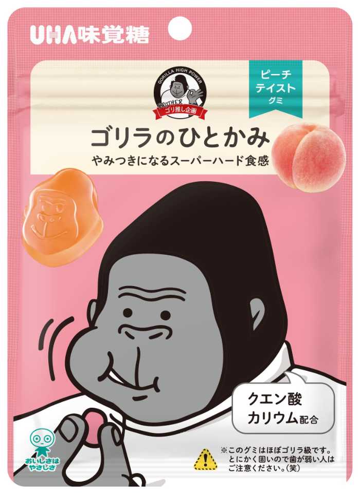 「UHA味覚糖 ゴリラのひとかみ ピーチ味」は245円(税込264.60円)。ゴリラでも噛み応えを感じるほどのハード食感をイメージした商品で、しっかり噛みながらピーチの甘さを味わえます。