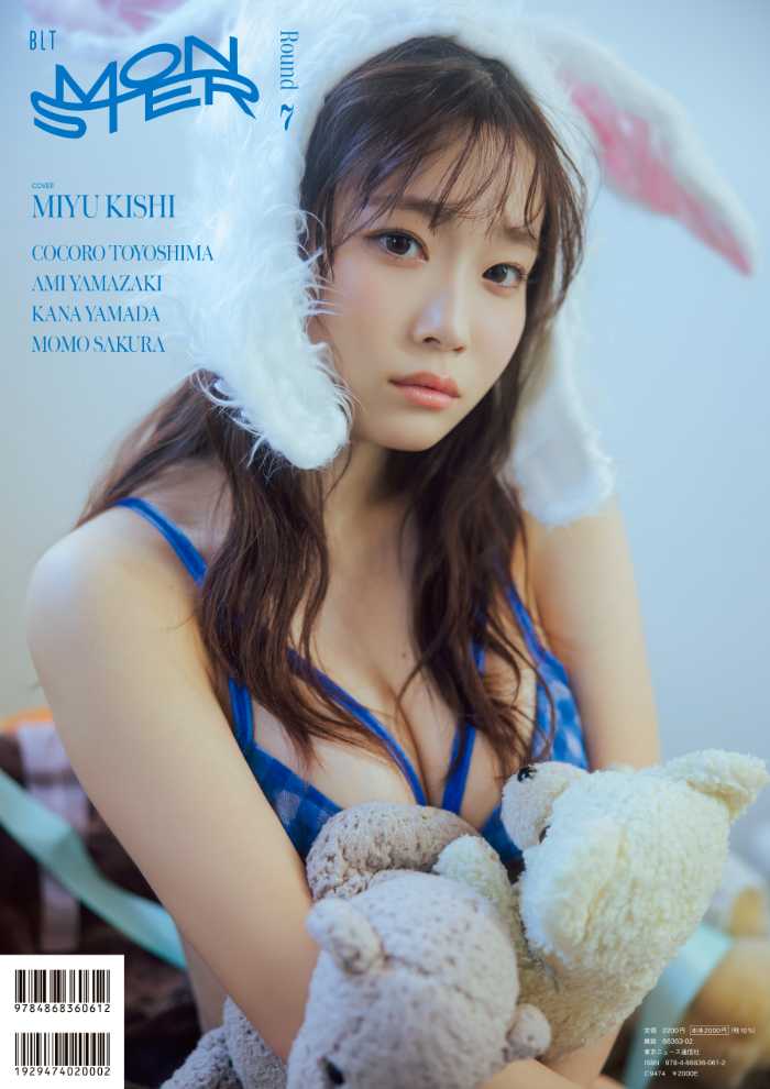 裏表紙を務めるのはアイドルグループ・#ババババンビの岸みゆ。通常版ではぬいぐるみとうさぎ耳の可愛らしい世界観を表現し、限定版では赤いワンピース水着姿で幻想的な雰囲気を披露しています。