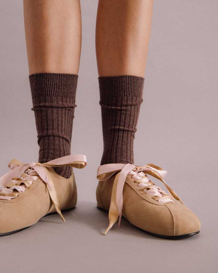 バレエの優雅さを感じさせるデザインと軽やかな履き心地を兼ね備えたTennis Silkスニーカーは、春の装いを上品に引き立ててくれる特別な一足。