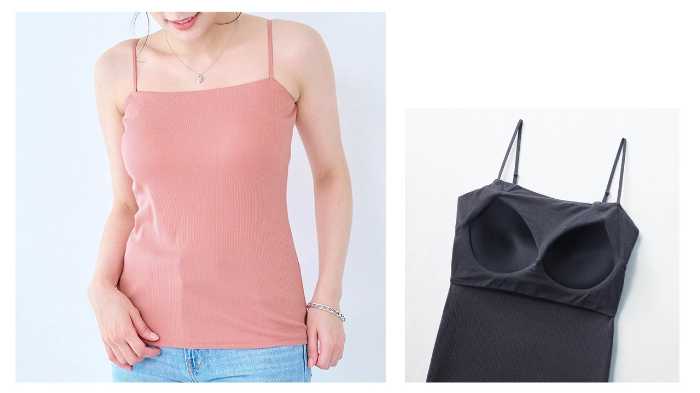 「冷やしさらっとコットン・ベアトップリブブラキャミソール」は価格2,290円、カラーはブラック・オフホワイト・サーモンピンク・チャコール・ライトベージュの5色展開。