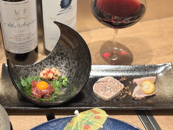 肉前菜には、新鮮なお肉の旨みを味わえる「ユッケ」。サクサクとしたリンゴと甘酸っぱいイチゴが添えられており、フルーツの甘さとお肉の甘さが重なり、お酒とも相性抜群!