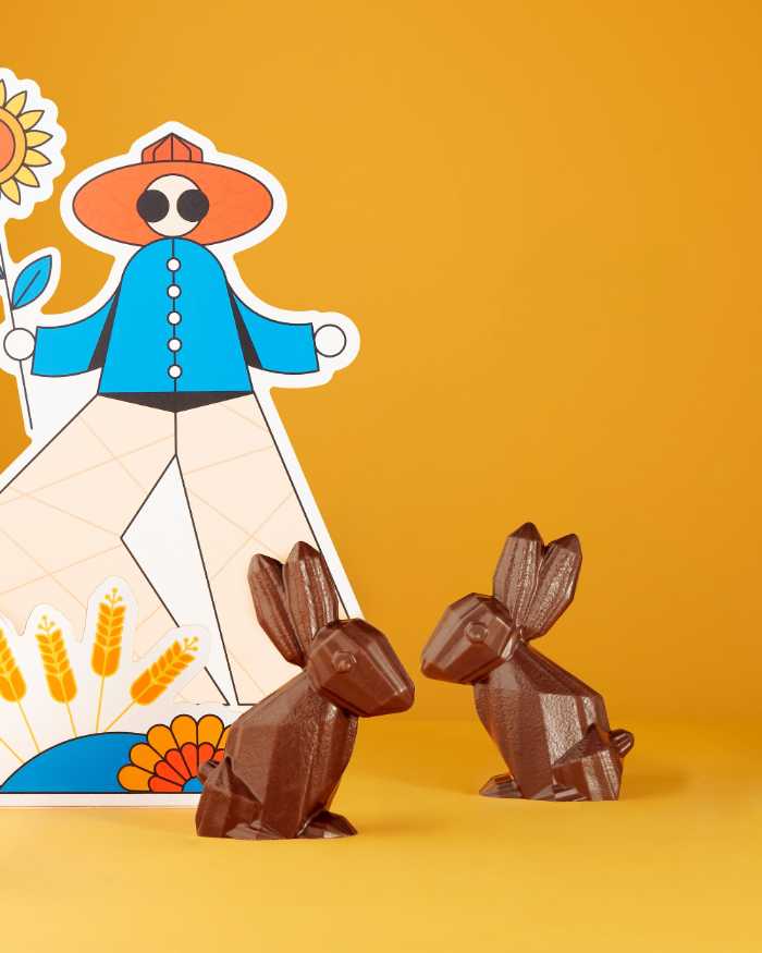 また、カカオポッドの形をベースにウサギやヒヨコをデザインした「フリチュール・プラリネ ノワール&オ・レ」は、ヘーゼルナッツ、アーモンド、ココナッツの3種類のプラリネを楽しめる一品。