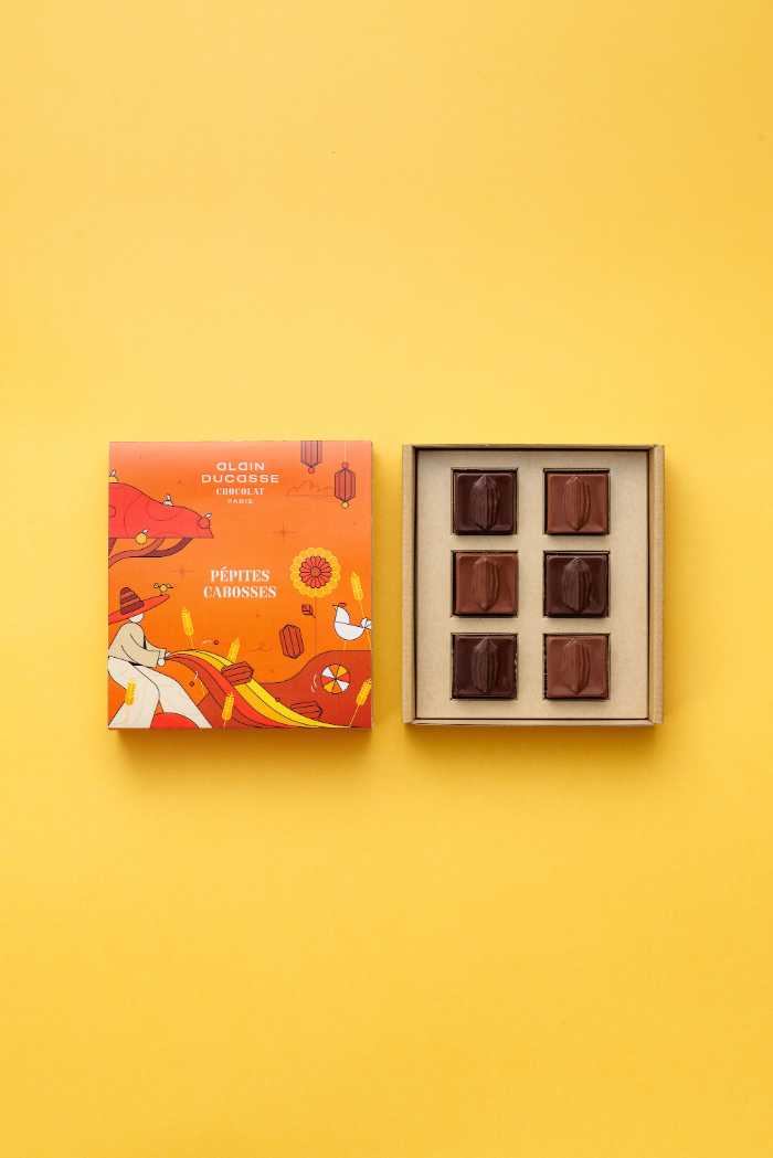 「ペピット・カボス 6個入り(2種)」は、カカオポッドを模ったペピットショコラ。