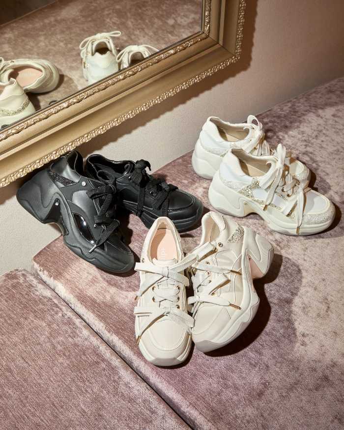 存在感のあるソールでスタイルアップを叶える「VOLUME SOLE SNEAKEARS」は、ヒール高8㎝台でありながらスニーカーならではの安定感が魅力。