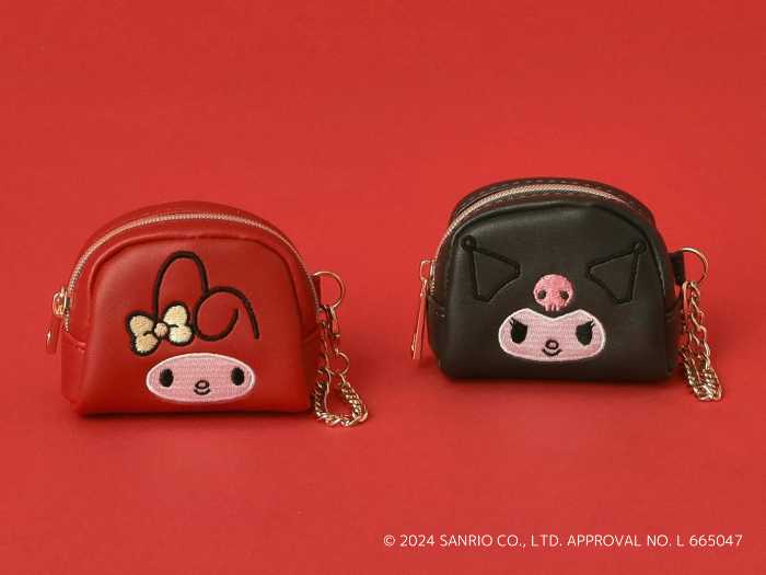 マイメロディ&クロミのフェイス刺繍がかわいいミニポーチ。ころんとしたフォルムで、イヤホンやアクセサリーなど小物収納にぴったり。チェーン付きでバッグチャームとしても使えます。