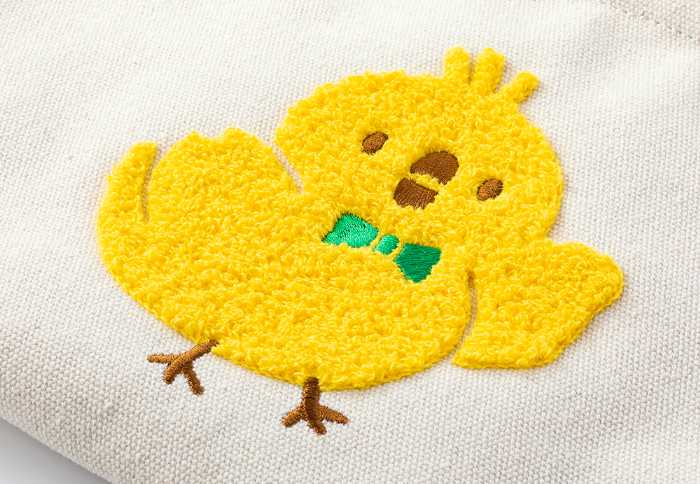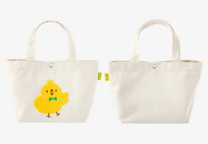 昨年大好評だった「ランチトートバッグ」も今年登場。緑の蝶ネクタイでおめかししたピヨが中央に刺繍された、ふわふわもこもこ素材の可愛らしいデザインです。